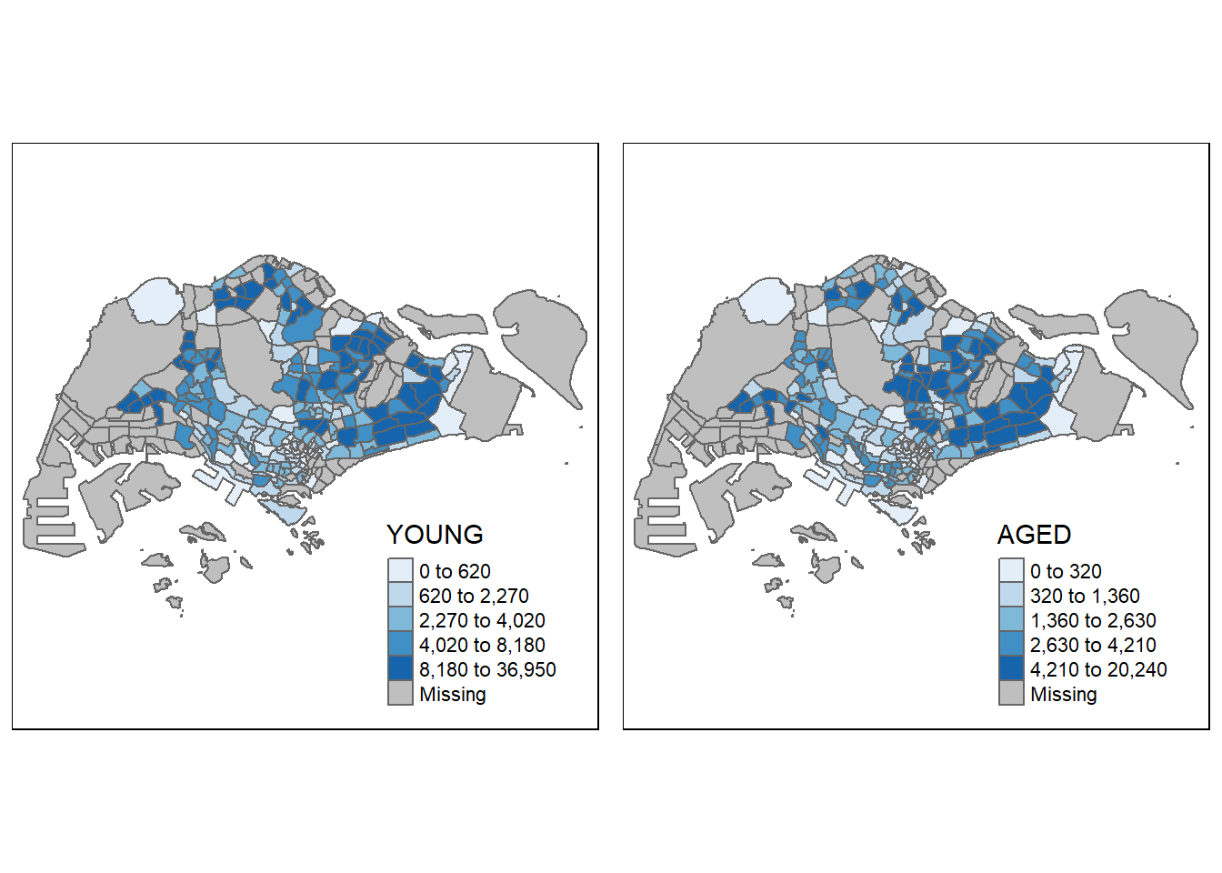 tmap_arrange(youngmap, agedmap, asp=1, ncol=2)