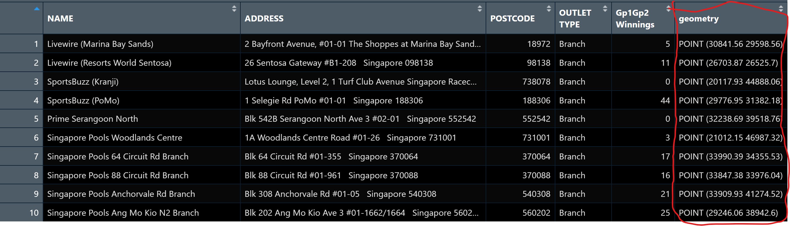 10 Singapore Pools An… Blk 20… 560202 Branch 25 (29246.06 38942.6)