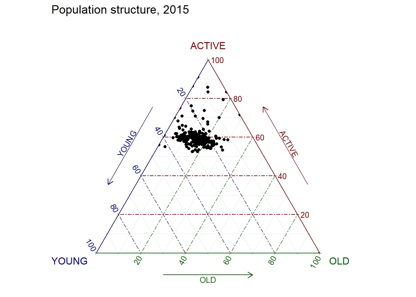 • ggtern is a package that extends the functionality of ggplot2, giving the capability to plot ternary diagrams for (subset of) the ggplot2 proto geometries.