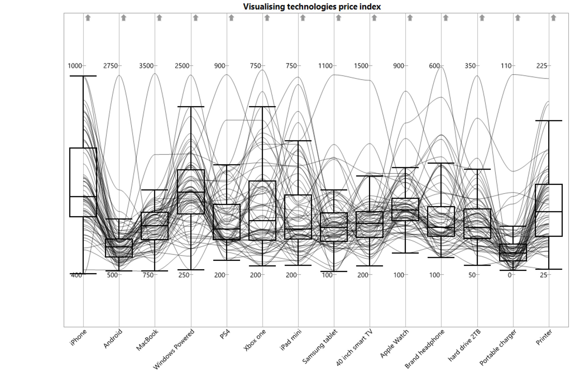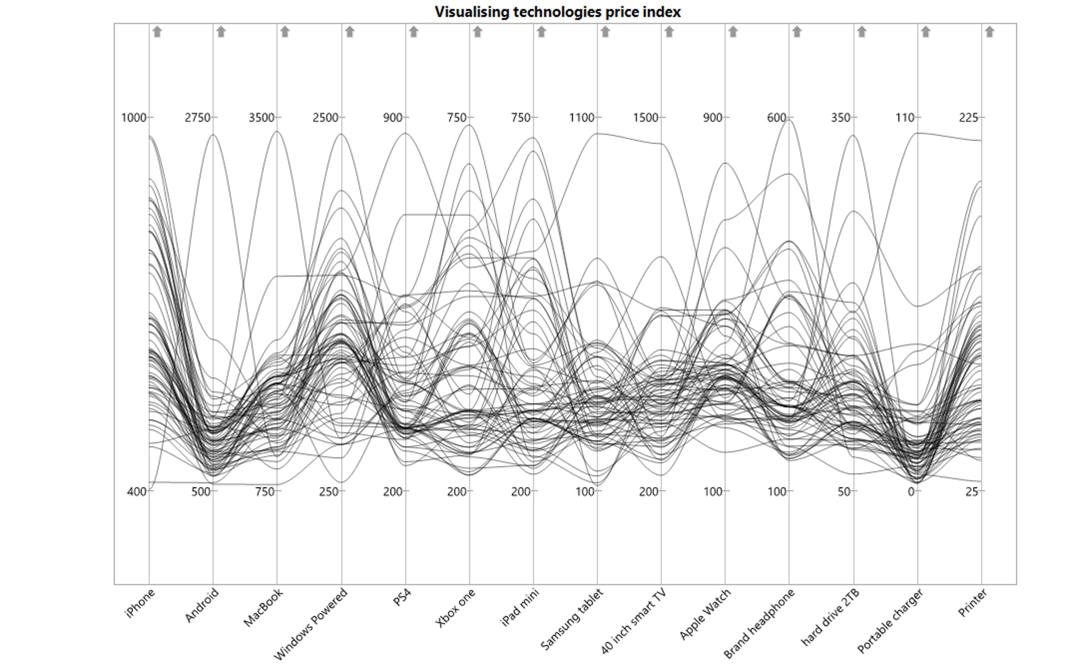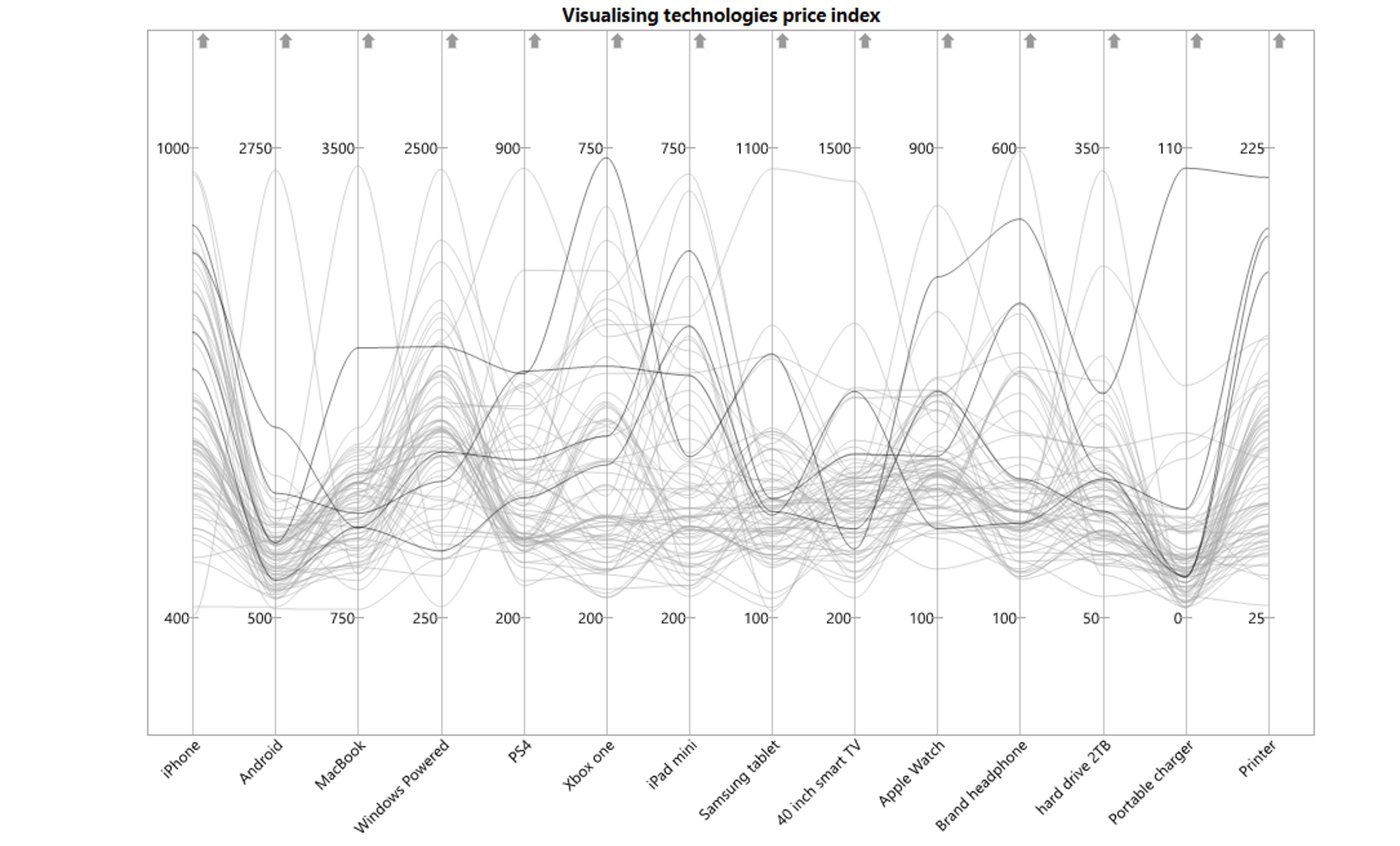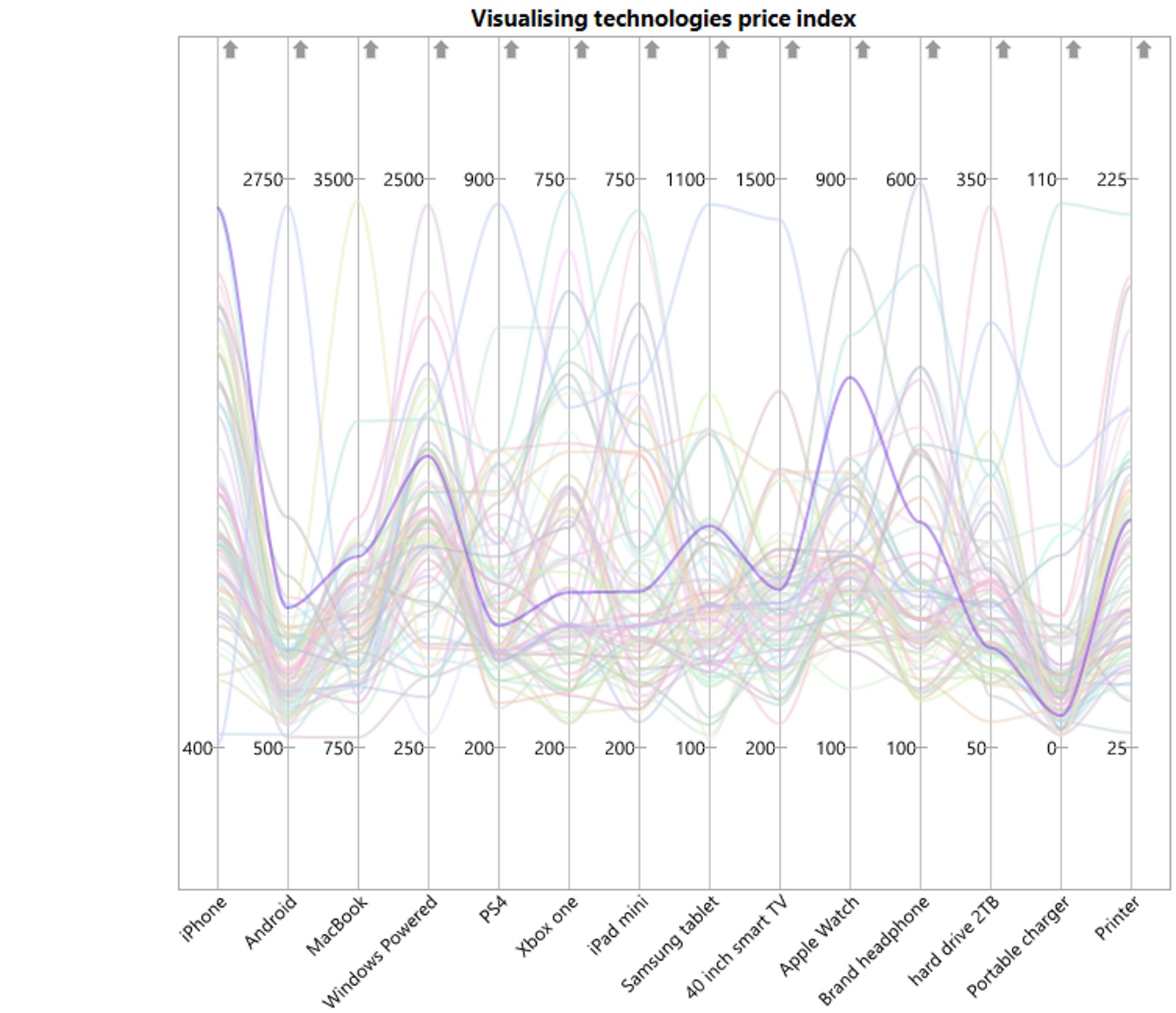 Parallel Coordinates plot or Parallel plot allows to compare the feature of several individual observations on a set of numeric variables.