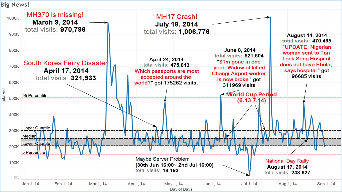 This line graph show the significant impact of SAR on the visitor arrivals pattern to Singapore.