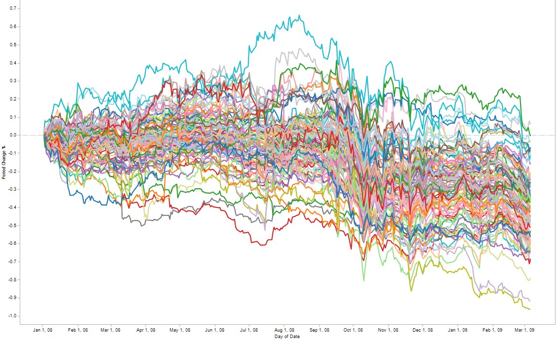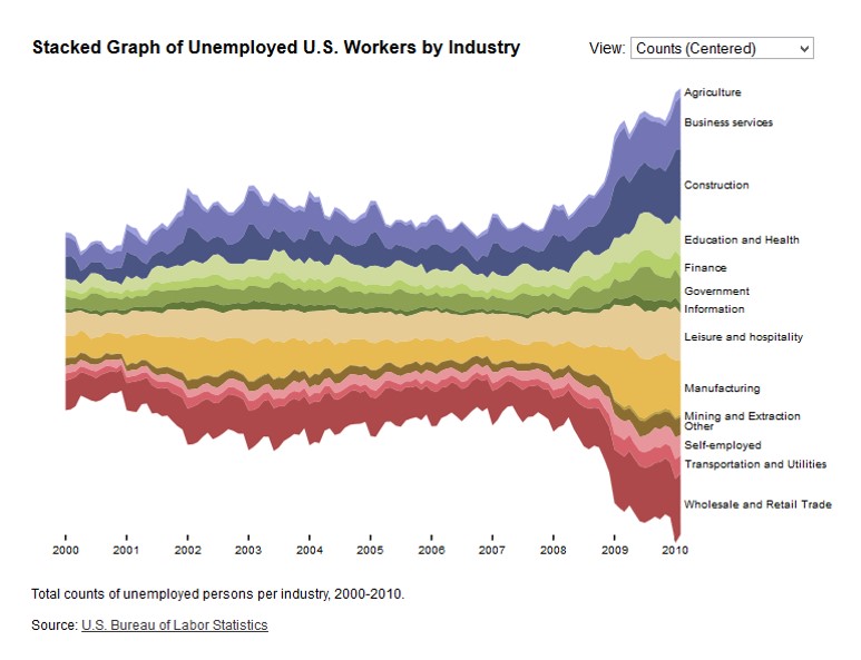 A streamgraph, or stream graph, is a type of stacked area graph which is displaced around a central axis, resulting in a flowing, organic shape.