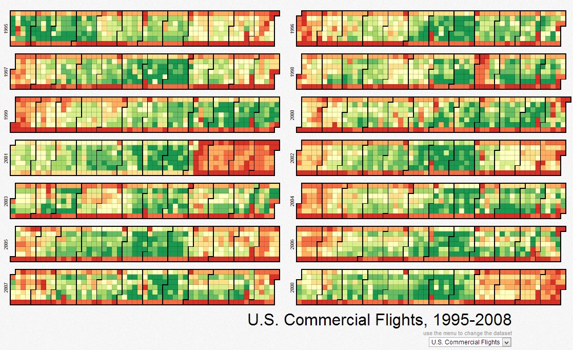 It is a 2-dimensional calendar view that shows a value over time through color coding it, often with warmer colors indicating higher values (hence heatmap).