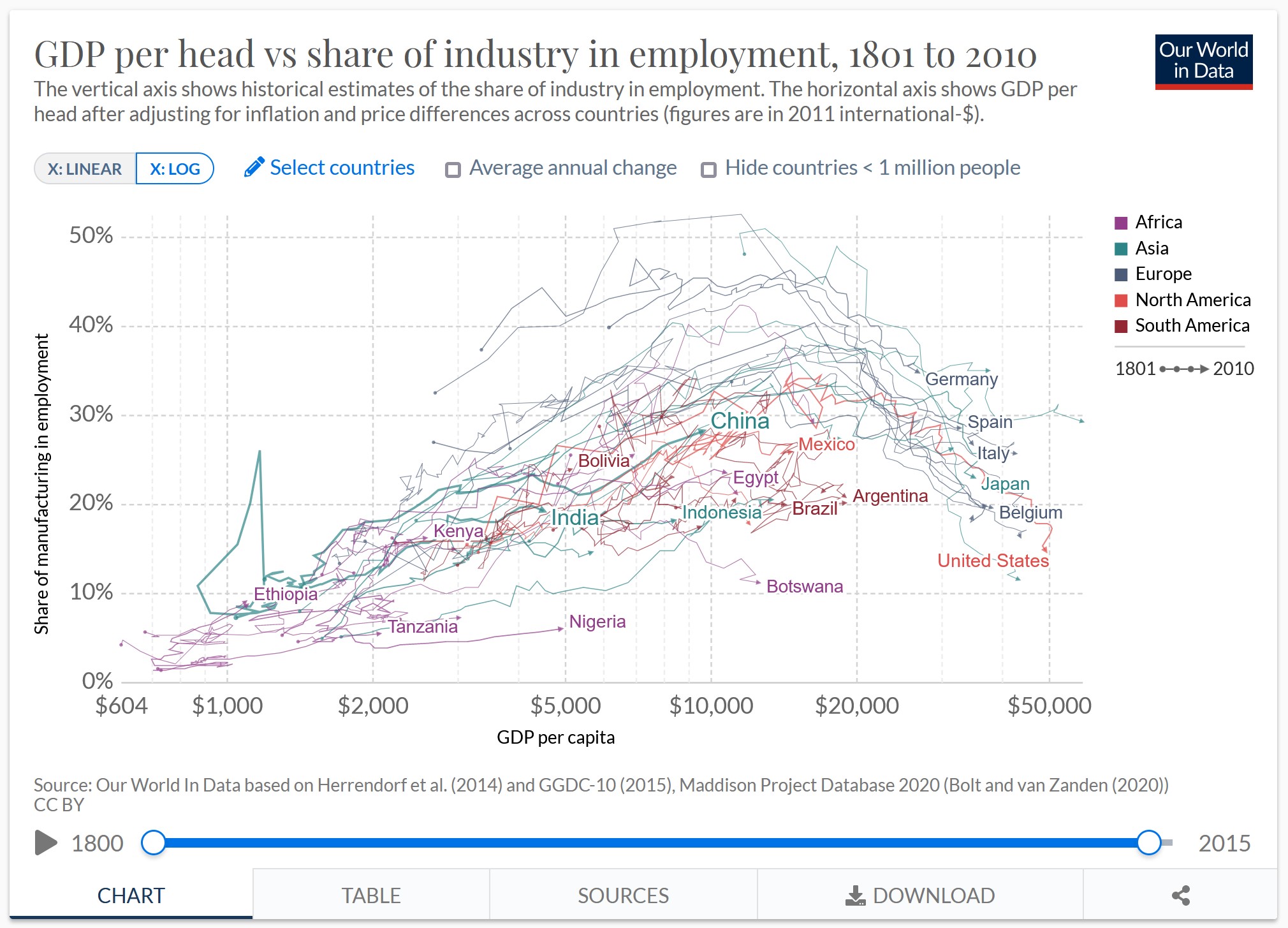 Slopegraphs compare changes usually over time for a list of nouns located on an ordinal or interval scale.