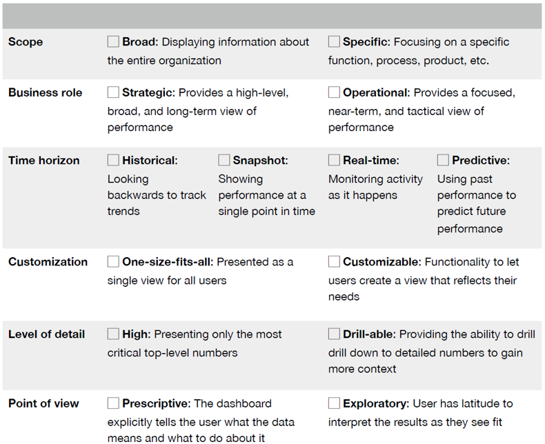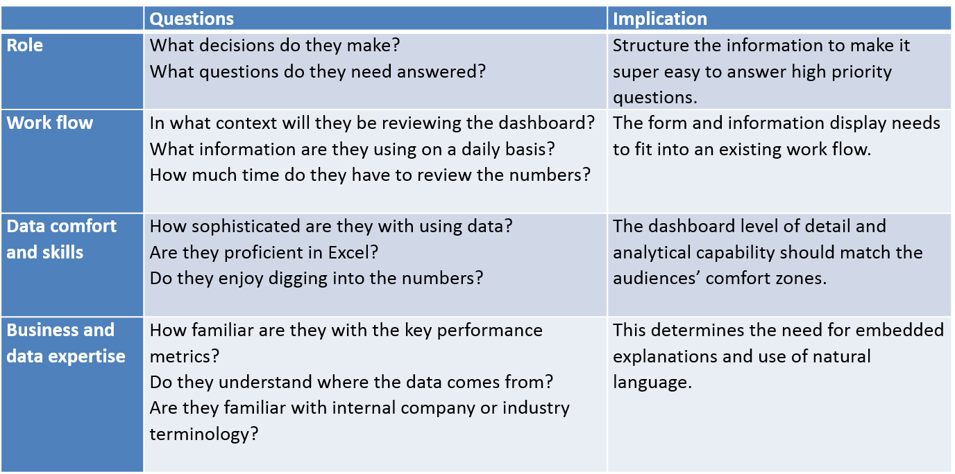 - Know what value your dashboard will add