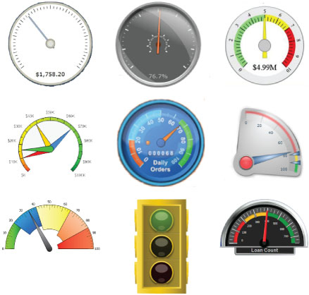 An assortment of typical dashboard gauges
